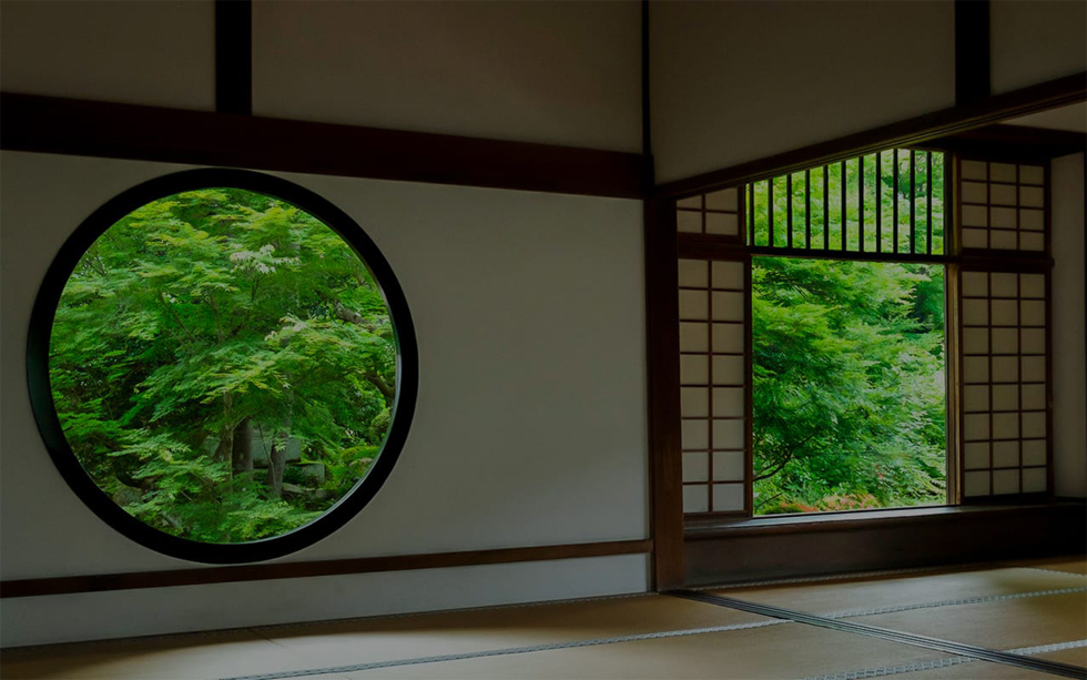 本堂の裏にお祀りしてある釈迦坐像がおよそ30センチ、もとは北白川心生寺の本尊であって芦庵をはじめ多くの歌人を出した守り仏といわれます。本堂には悟りの窓と名付けられた丸窓と、迷いの窓という角窓があります。悟りの窓は円型に「禅と円通」の心を表わし、角窓は人間の一生を象徴して「生老病死四苦八苦」を表わしています。